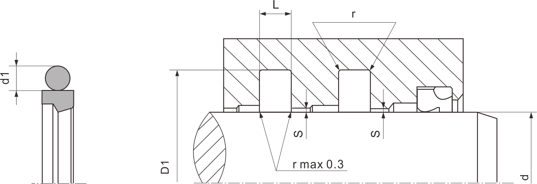 活塞桿用單向作用密封圈,由一個(gè)抗磨的填充聚四氟乙烯PTFE圈和O形橡膠密封圈組成。O形圈提供彈力,可對(duì)PTFE階梯圈的磨損起補(bǔ)償作用,只具有單向密封效果。適用于液壓缸活塞桿的密封。一般和導(dǎo)向環(huán)配套使用。軸徑小于φ30的規(guī)格,應(yīng)采用分體式溝槽。