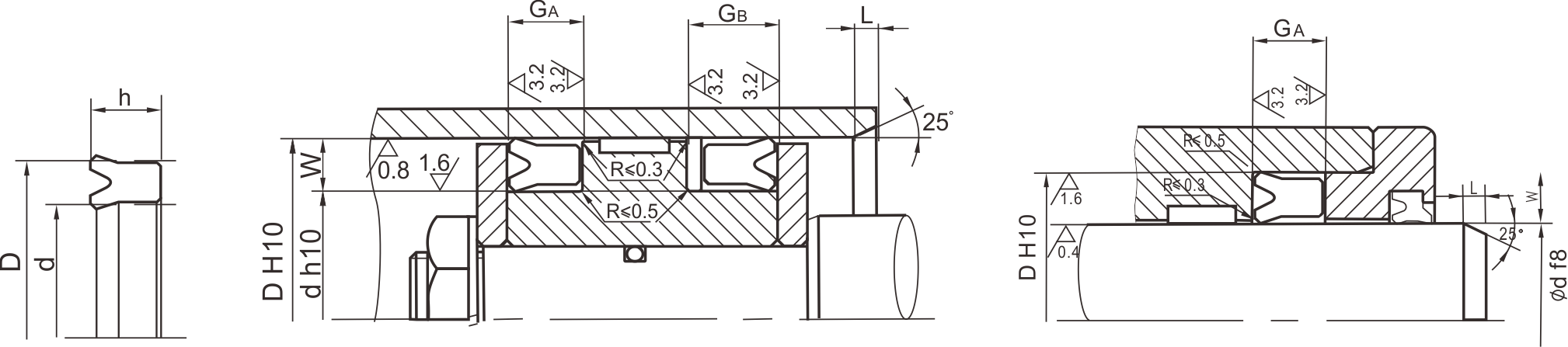 * 滑動(dòng)表面的表面粗糙度應(yīng)與安裝的密封元件相匹配。